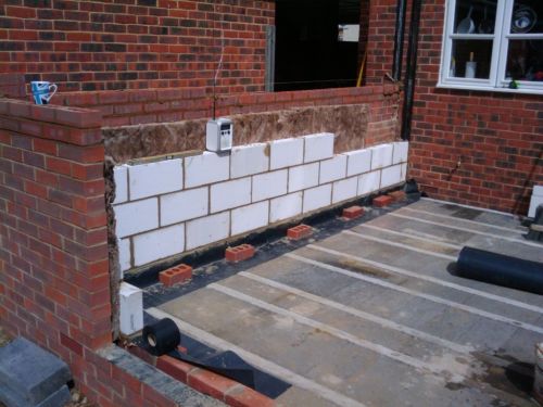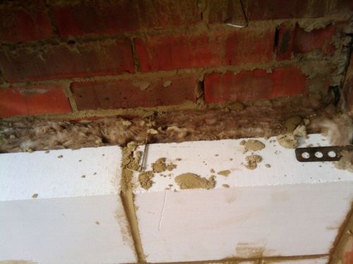 The cavity wall insulation was placed while the walls there bricked up. The order is external bricks, insulation placed, internal blocks added.