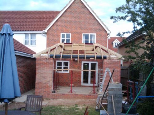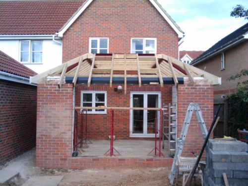 Today the framework for the roof was almost completed. All the timber is on, the fascia and soffits put on the side, little holes for the 2 Velux windows done. The builders said that there is a couple hours more work to do on Monday and then it will be ready for the cover which gets tacked on before tiling, I think. Also today my speaker cables arrived ready to run the surround sound under the floor (it will go through the insulation and be covered in screed.