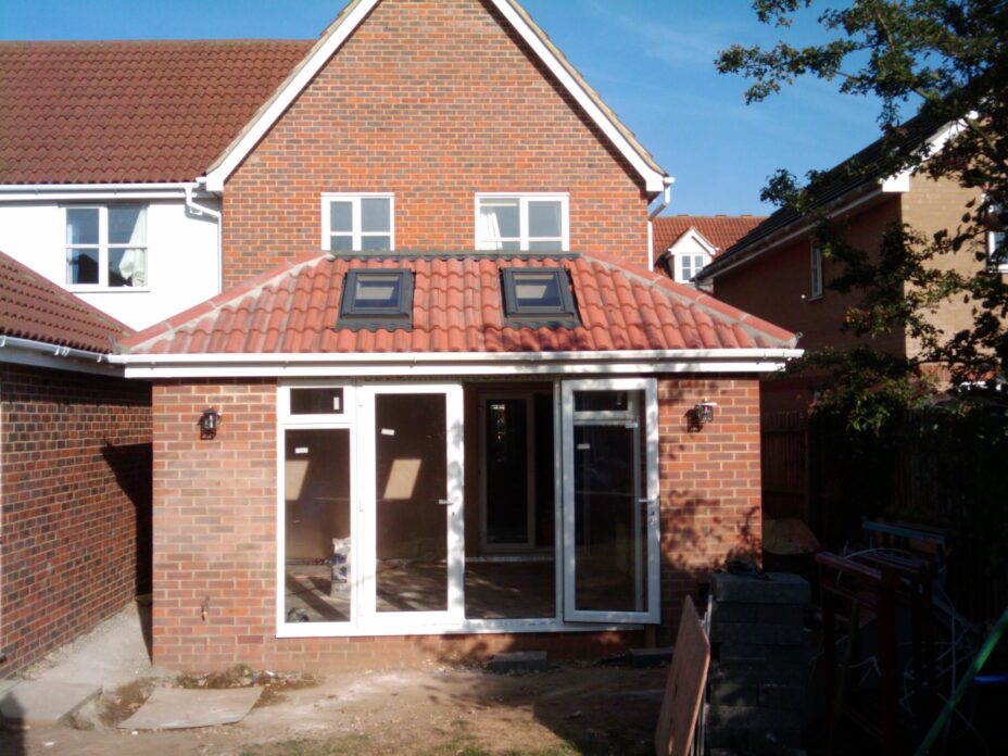 Doors arrived and went in. They look good. We have 1.7m French doors which open all the way out so they can be hooked to the walls. Each side is a 0.65m side panel with a window at the top for ventilation on warm, rainy days. Good solid German doors (I forget the brand at the moment), put together (made to measure) in Heybridge (or was it Hullbridge?).