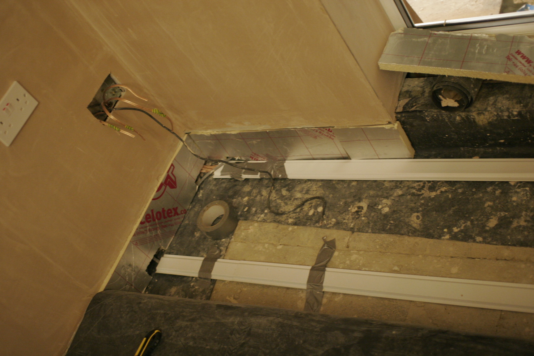 I added some protection for my speaker cables in the evening using some Tower PVC Channel 38mm from Screwfix. Not an ideal solution but better than the cables feeling the full force of the floor above and becoming damaged. I also used some spare channel to cover the exposed electric cable that is fixed to the suspended floor.