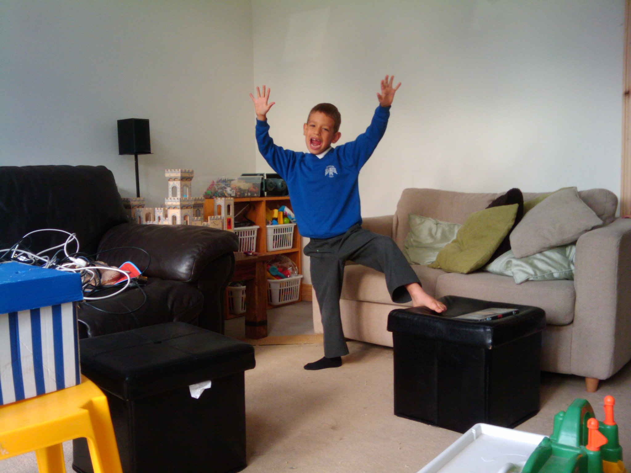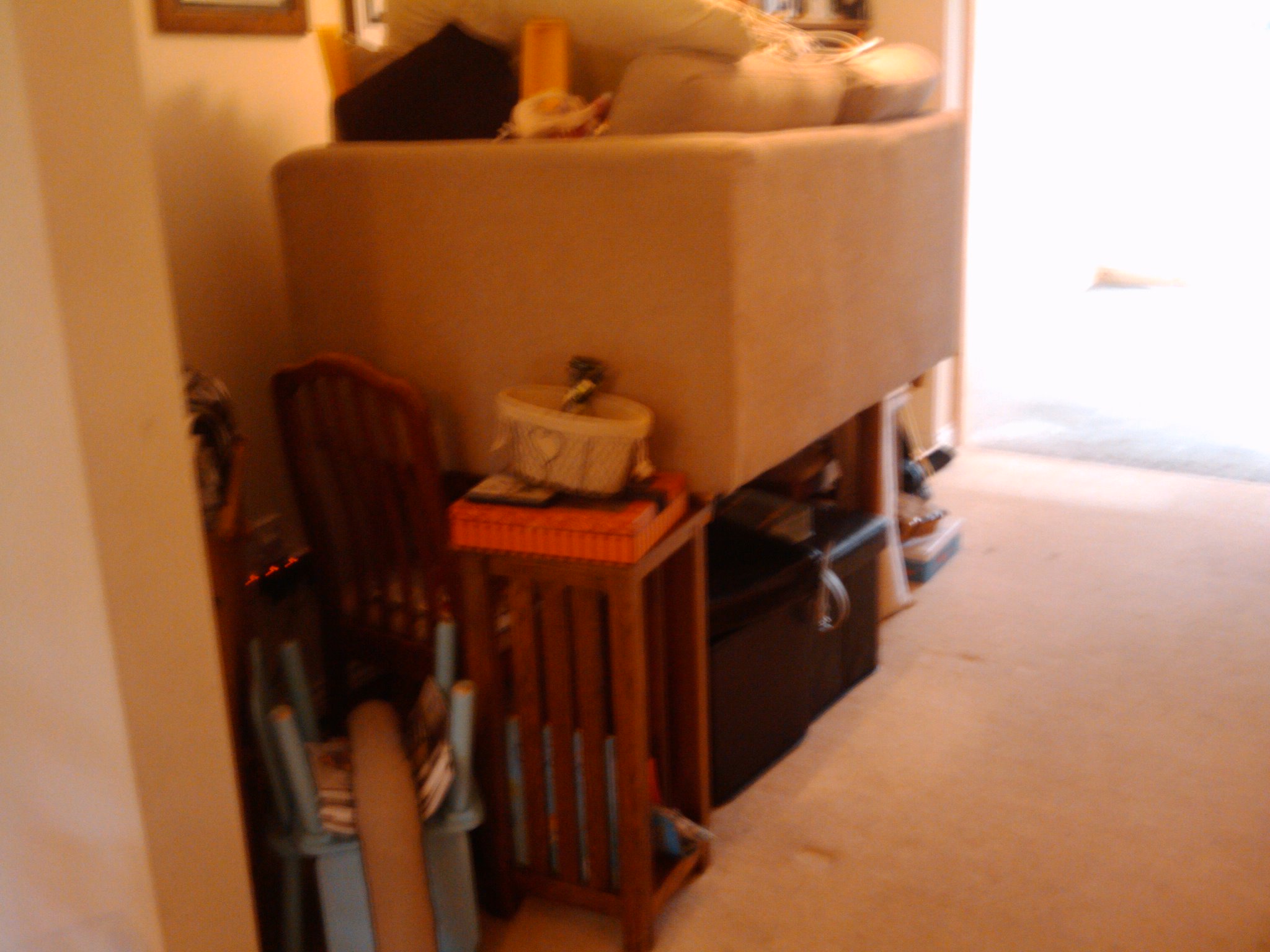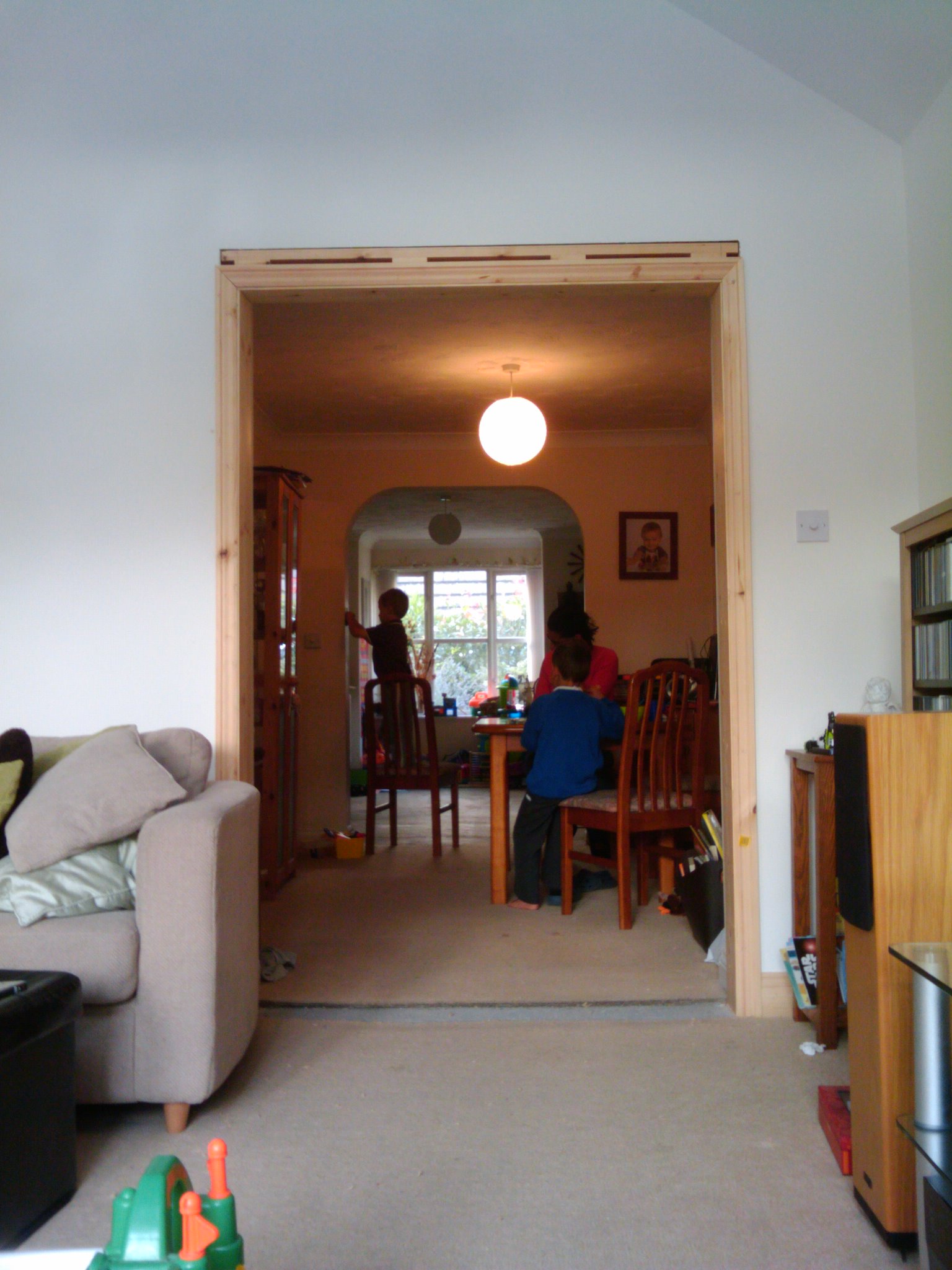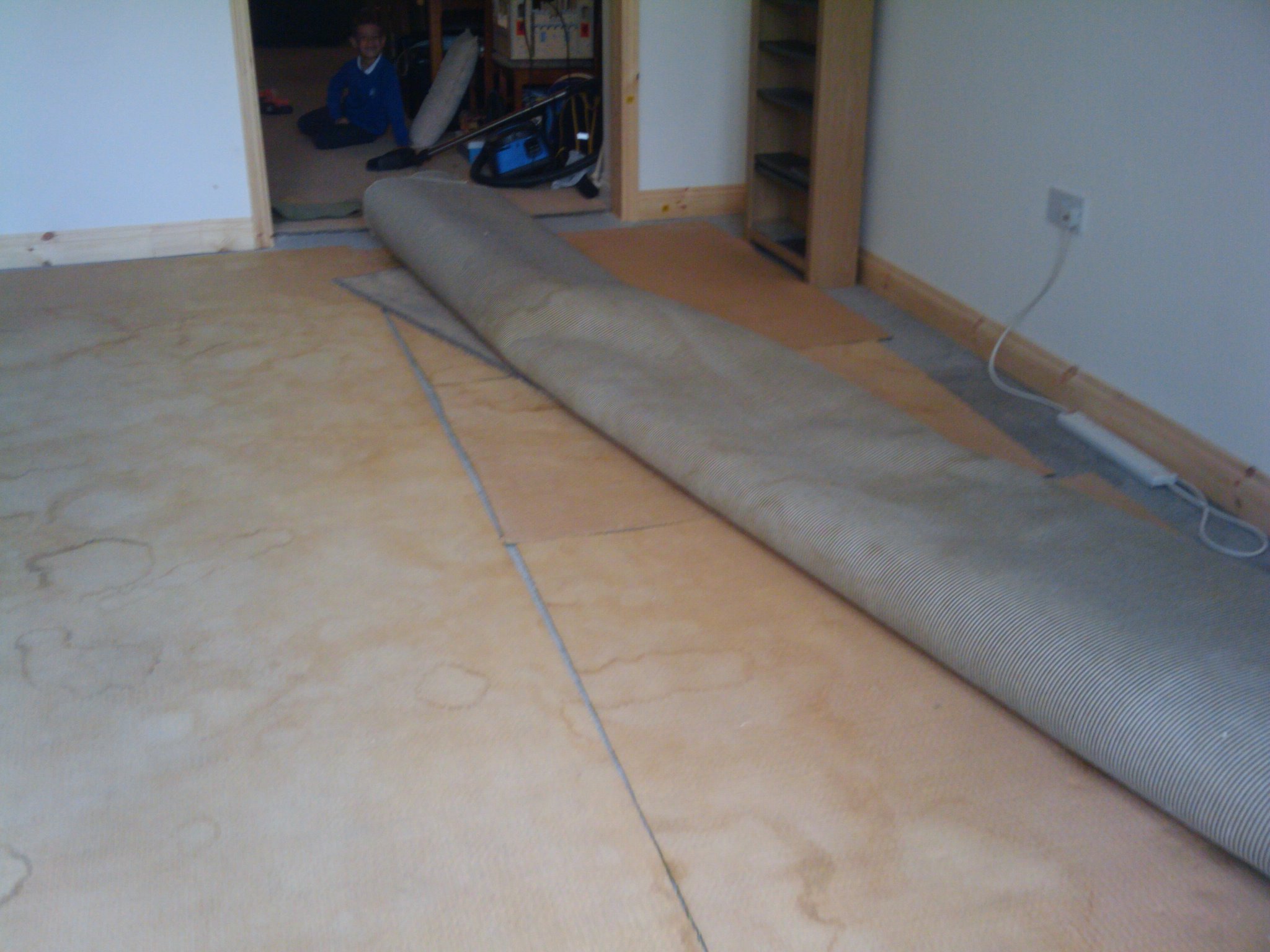 Today we moved into our new extension. After the builders left in the afternoon I started clearing the living room and took up the carpet. The carpet fits well in the extension. I left a gap of about 5 cm all around the edge to make it easier to paint the skirting board. I probably should have done this first, but I wanted to move in. In fact, I needed to move in before next week so that the internal alterations can start.