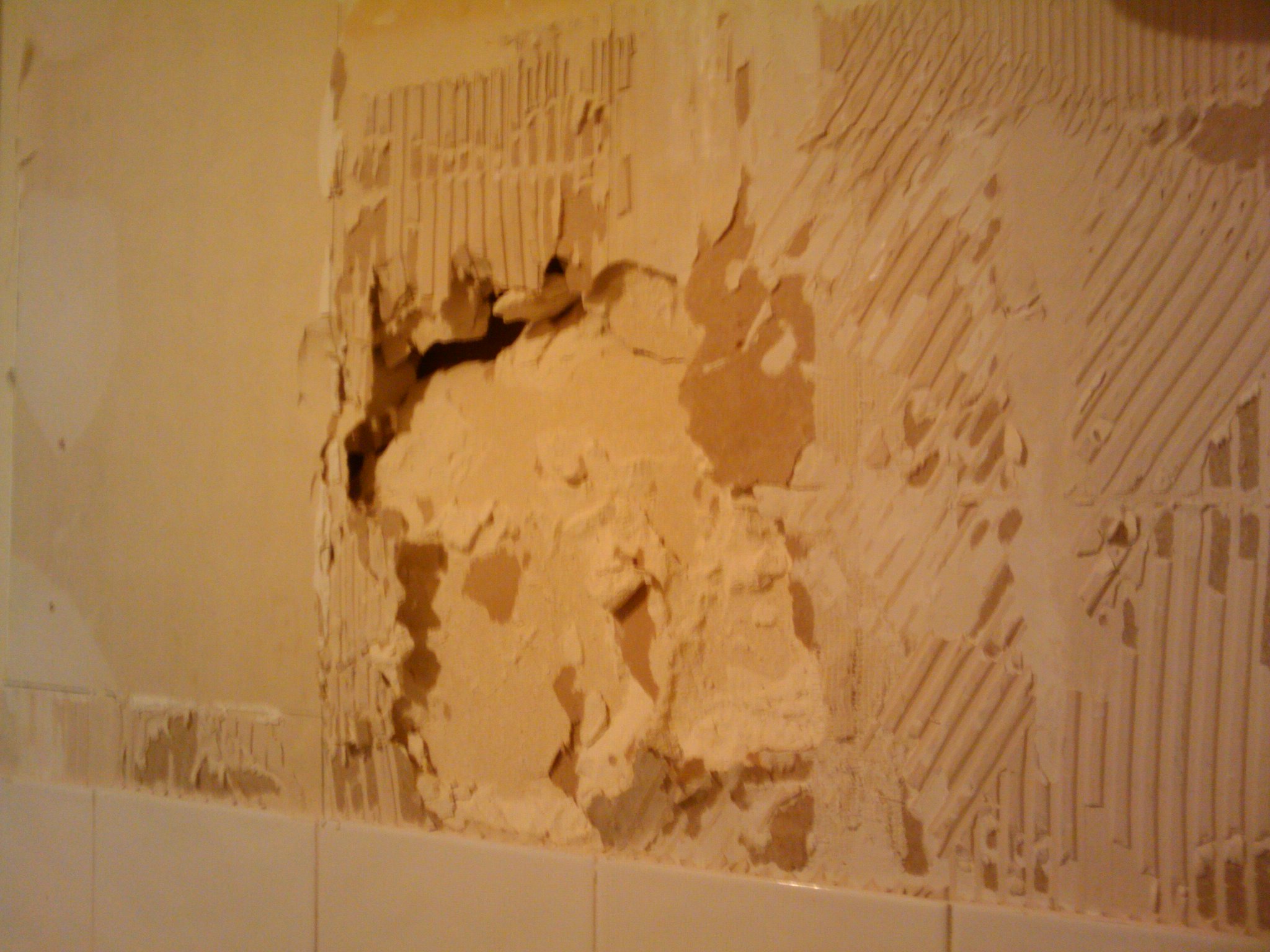 Barratt Homes attached the kitchen tiles direct to the plasterboard rather than plastering first. Removing them made a mess.