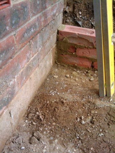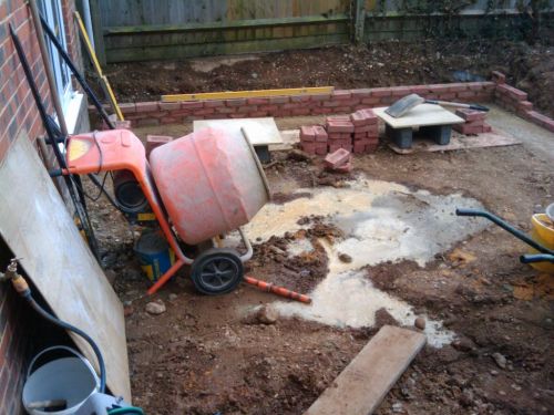 The first of the bricks had been laid today too. The skip man and the materials people were both late in delivering.