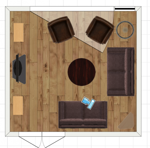 Living room plan from photo taken today. Furniture marked out.